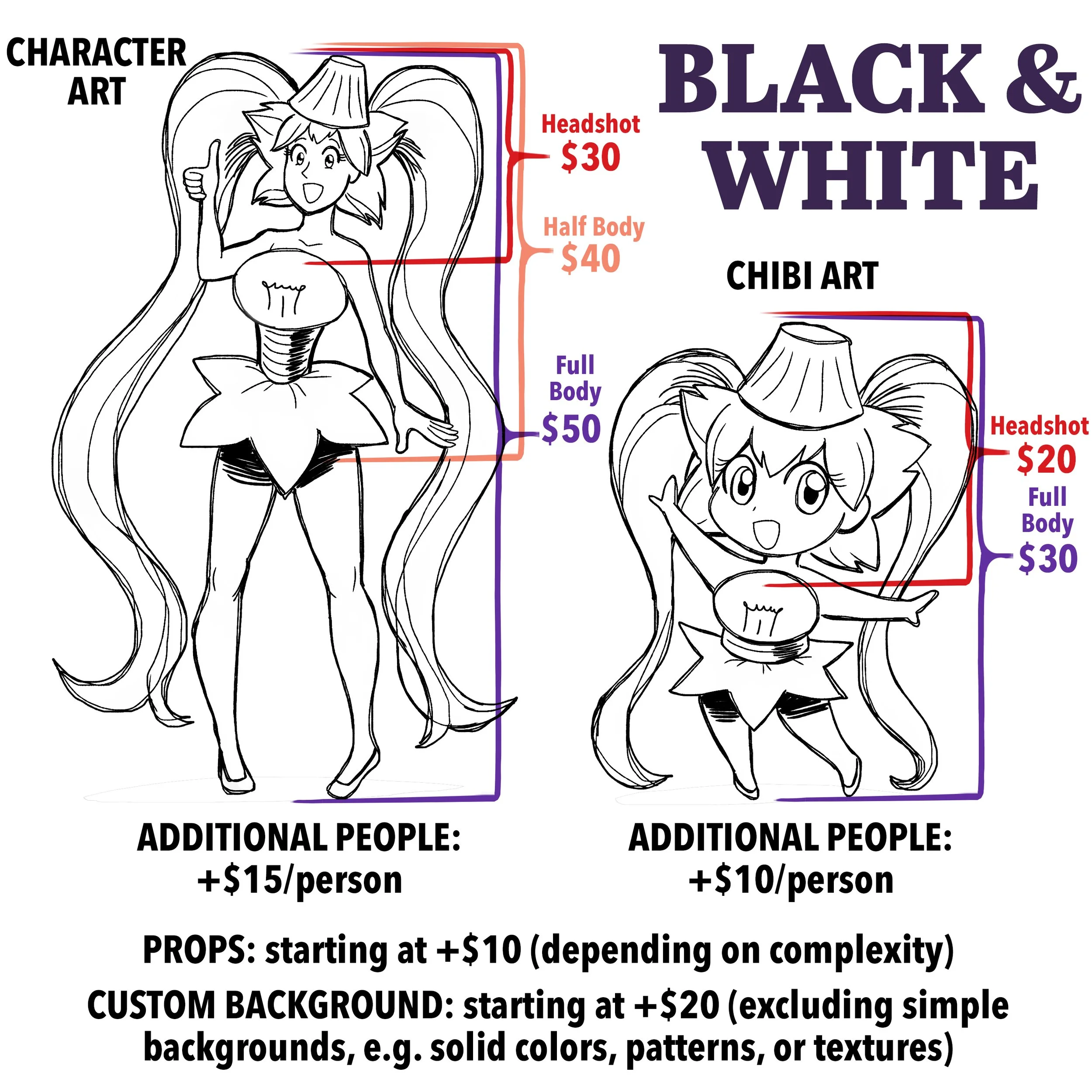 Prices below are subject to vary based on each commission. 〰️ I accept cash and PayPal. (PayPal business transactions include a fee.) 〰️ Students receive a 25% discount. 〰️