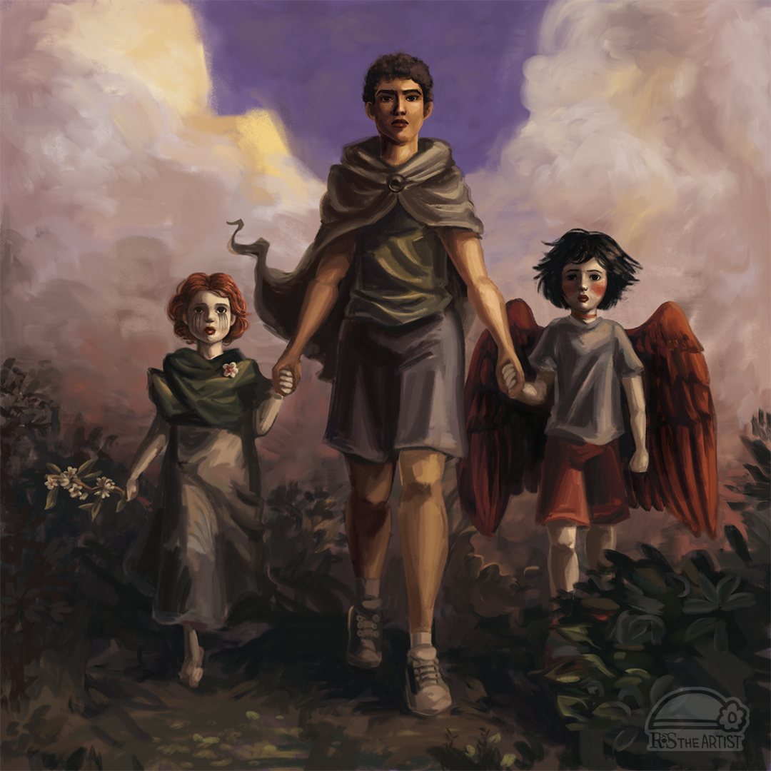 "Gerda and the Robber Girl." Oil on canvas. 9 in x 12 in. 2019.